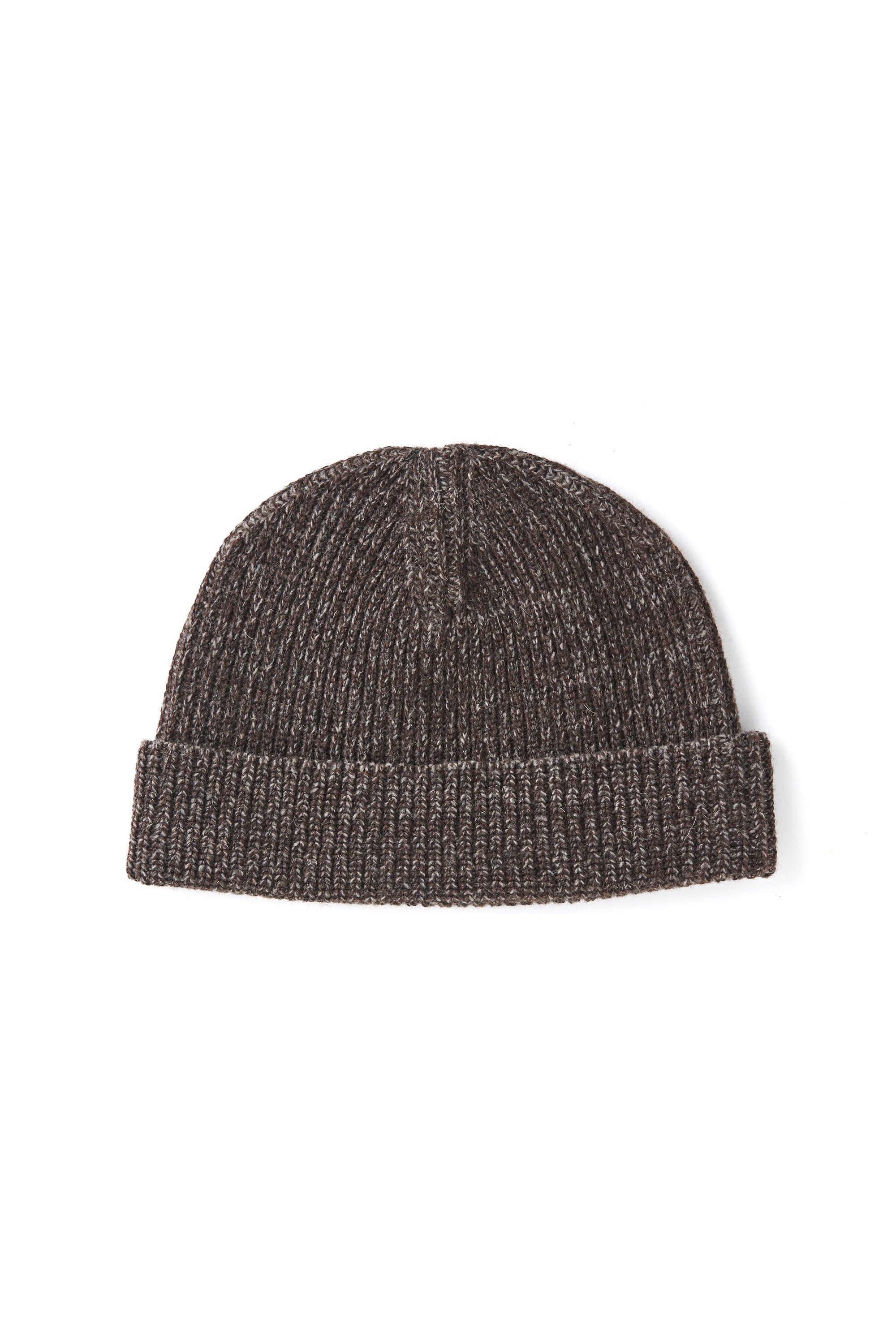DESCRIPTIONオーセンティックな畔編みのニットキャップ。ストレートウールとリネンケンピをブレンドさせ、上質な編み地の中に粗野な雰囲気を持つケンピヤーンが主張し奥行きのある表情に仕上がっています。リネン混のケンピ糸にウールのストレート糸を片畦裏使いのプレーティングで7Gに編み上げた。プレーティングすることで片畦を編立た際により立体感がでる構造に仕上げた。ハリのあるリネンの効果で軽く上がりつつ型崩れしにくい編み組織も特徴。