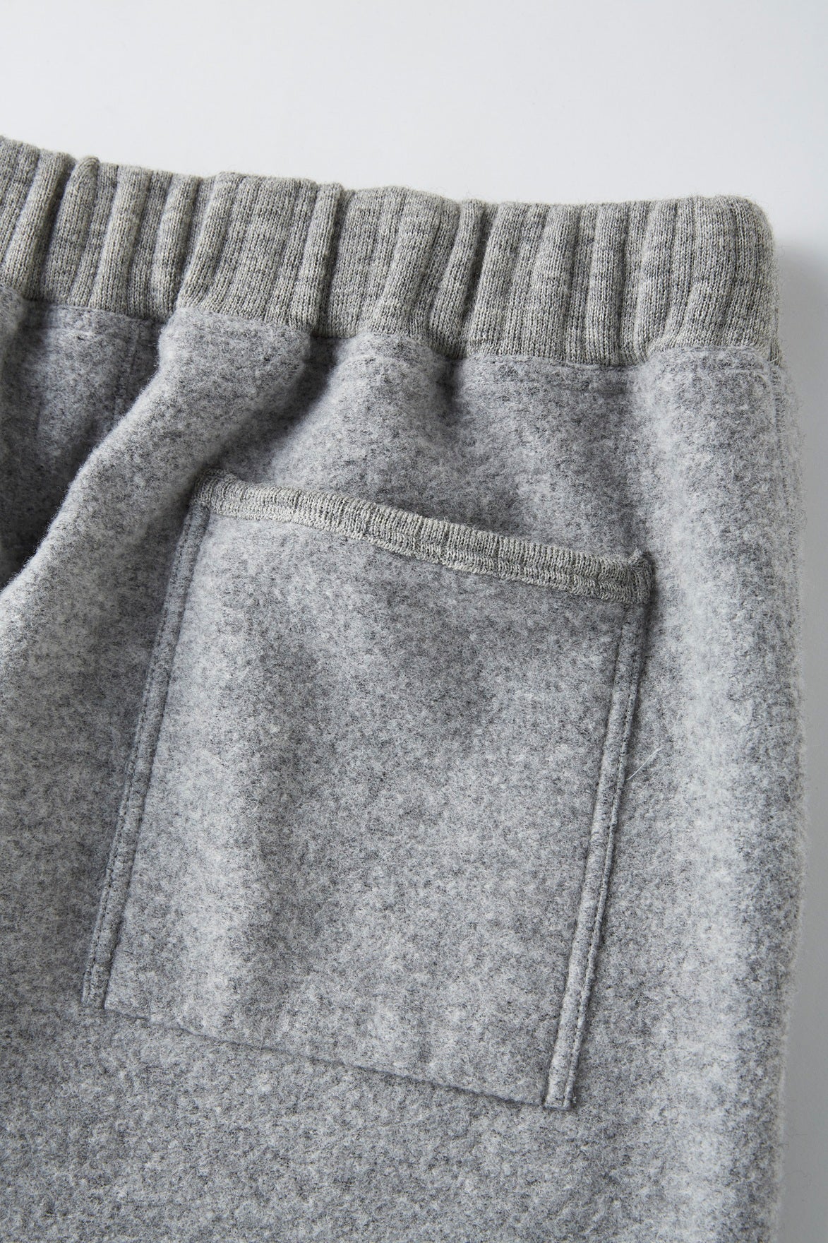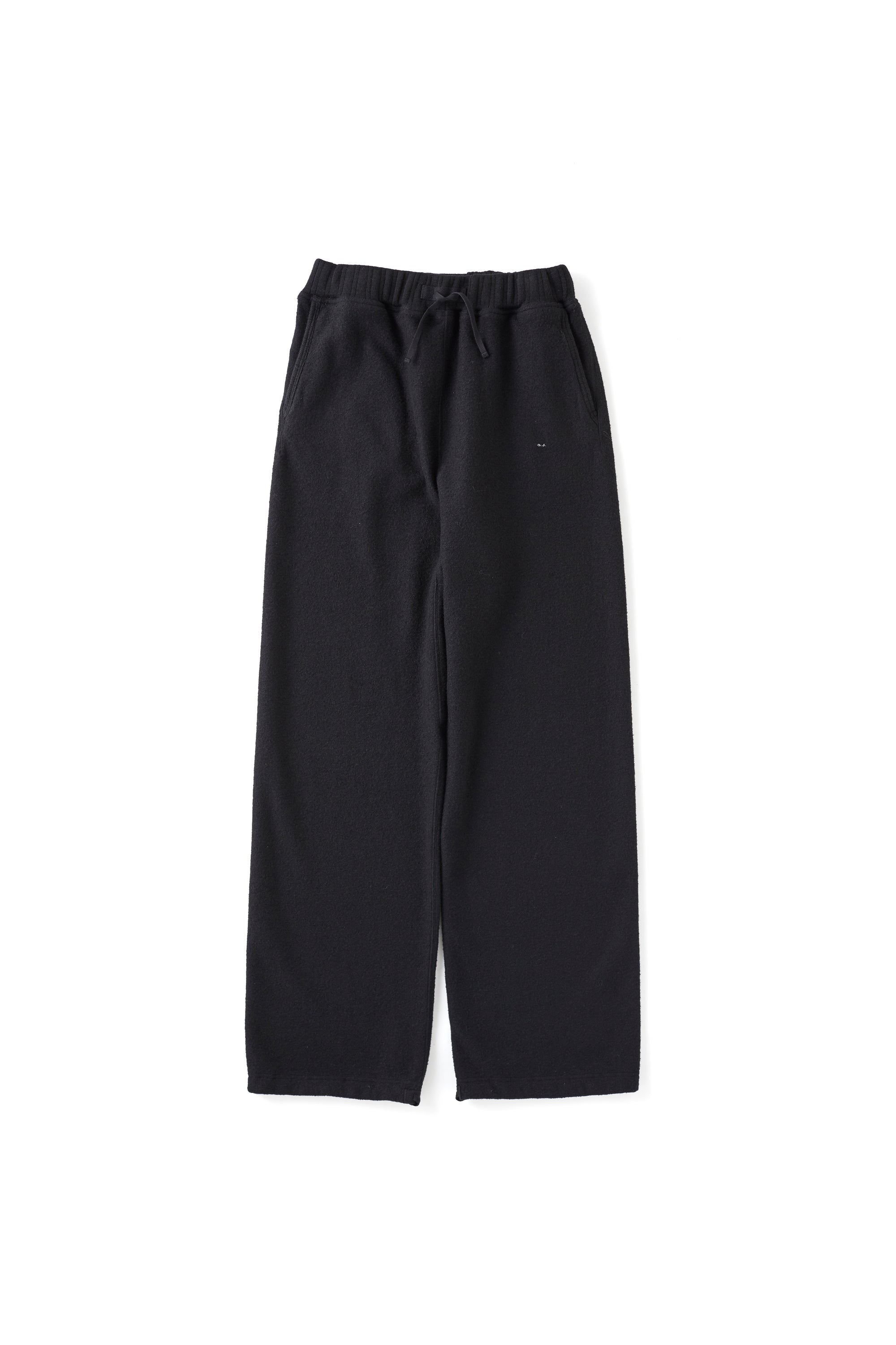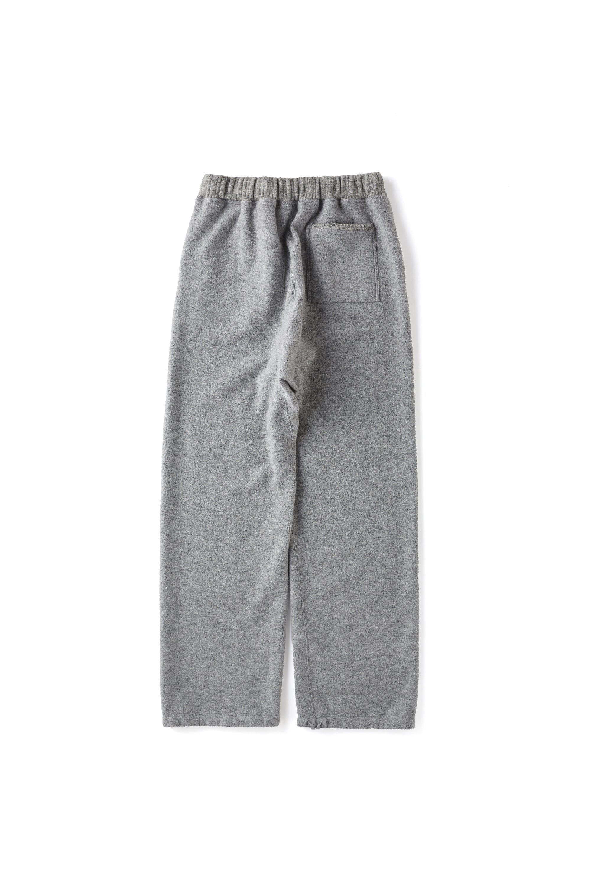 ウエストと裾に配されたドローコードでシルエットをアレンジすることができるスウェットパンツ。古き良きアスレチックウェアのディテールと、昔ながらのユニークなカッティングラインが雰囲気を盛り上げる。ファンシーウールヤーンで編み立てたマテリアルは、上質な質感と心地よい肌触りが特徴的。またテーラーメイドのシャツに施されるような上品なイニシャル刺繍がクラシカルな雰囲気を盛り上げる。ウール繊維をリング状に整形したファンシーヤーンを使用し、12Gで編み上げたウールリング。リングヤーンならではのふっくらとした表情が魅力。ボリュームのあるリングヤーンで編んだふっくらとした天竺に、フライス加工を施して高密度にすることで、しっかりと厚みのある素材に仕上げた。
