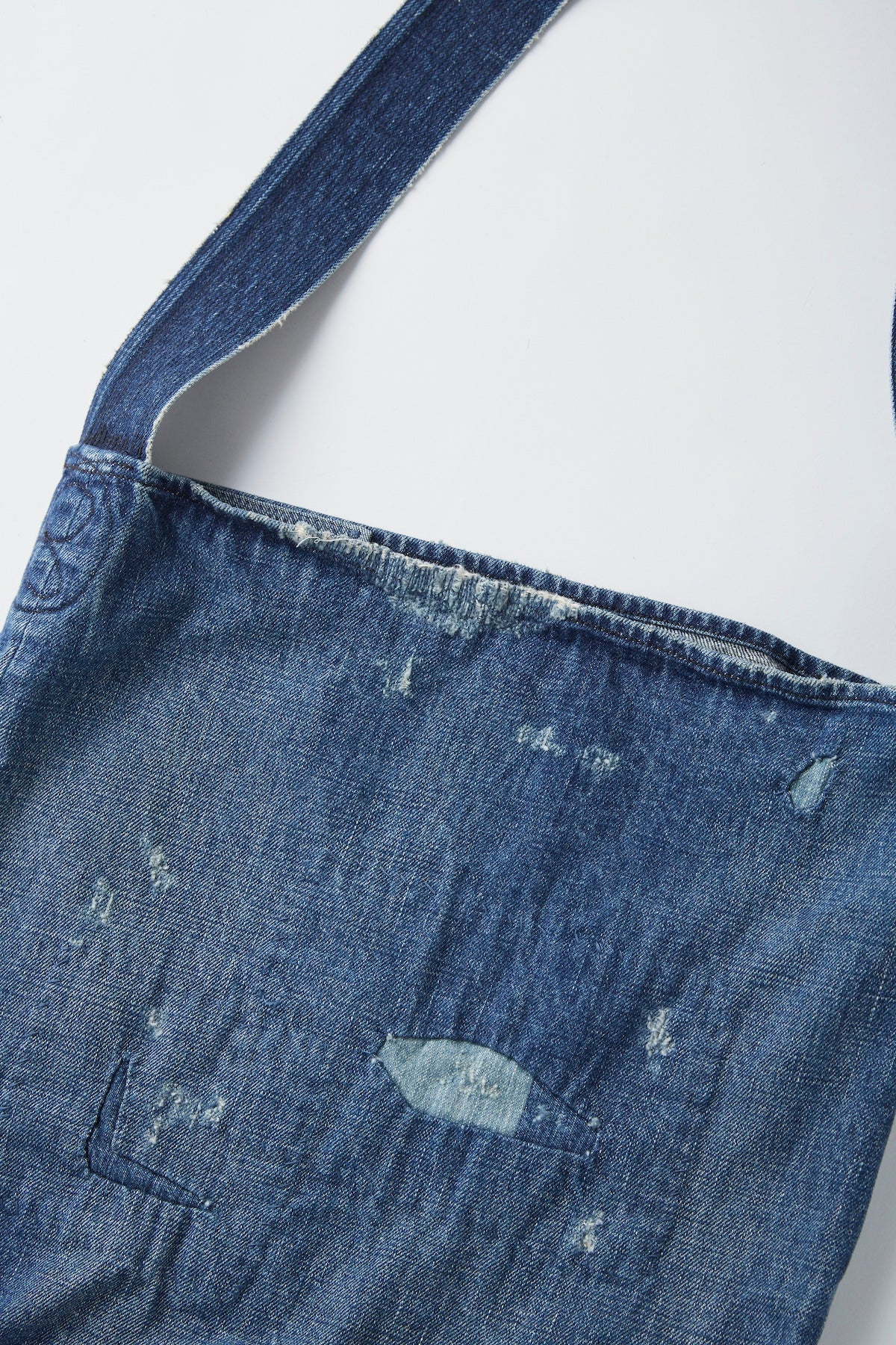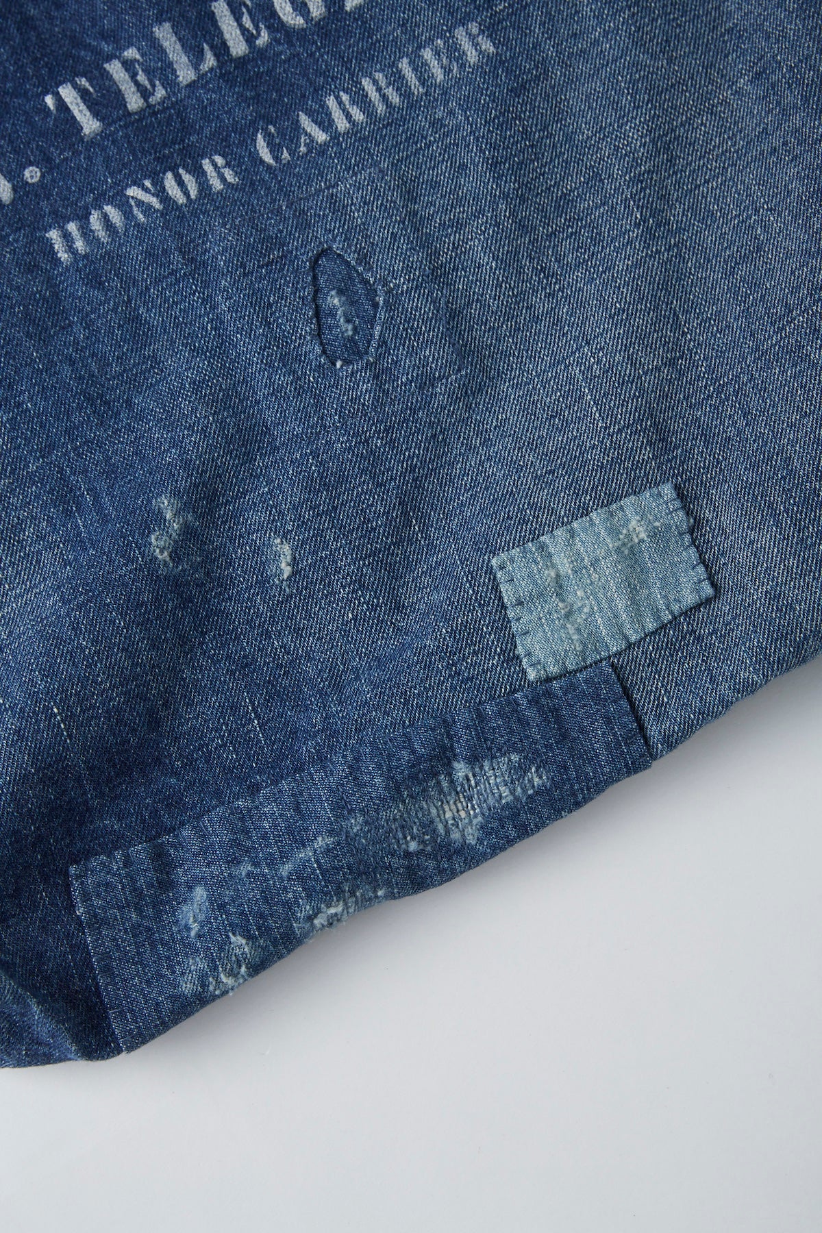 エイジングアンドリペアが施されたトートバッグ。経年変化で美しくユニークな存在になった様を、独自の解釈で再構築しています。