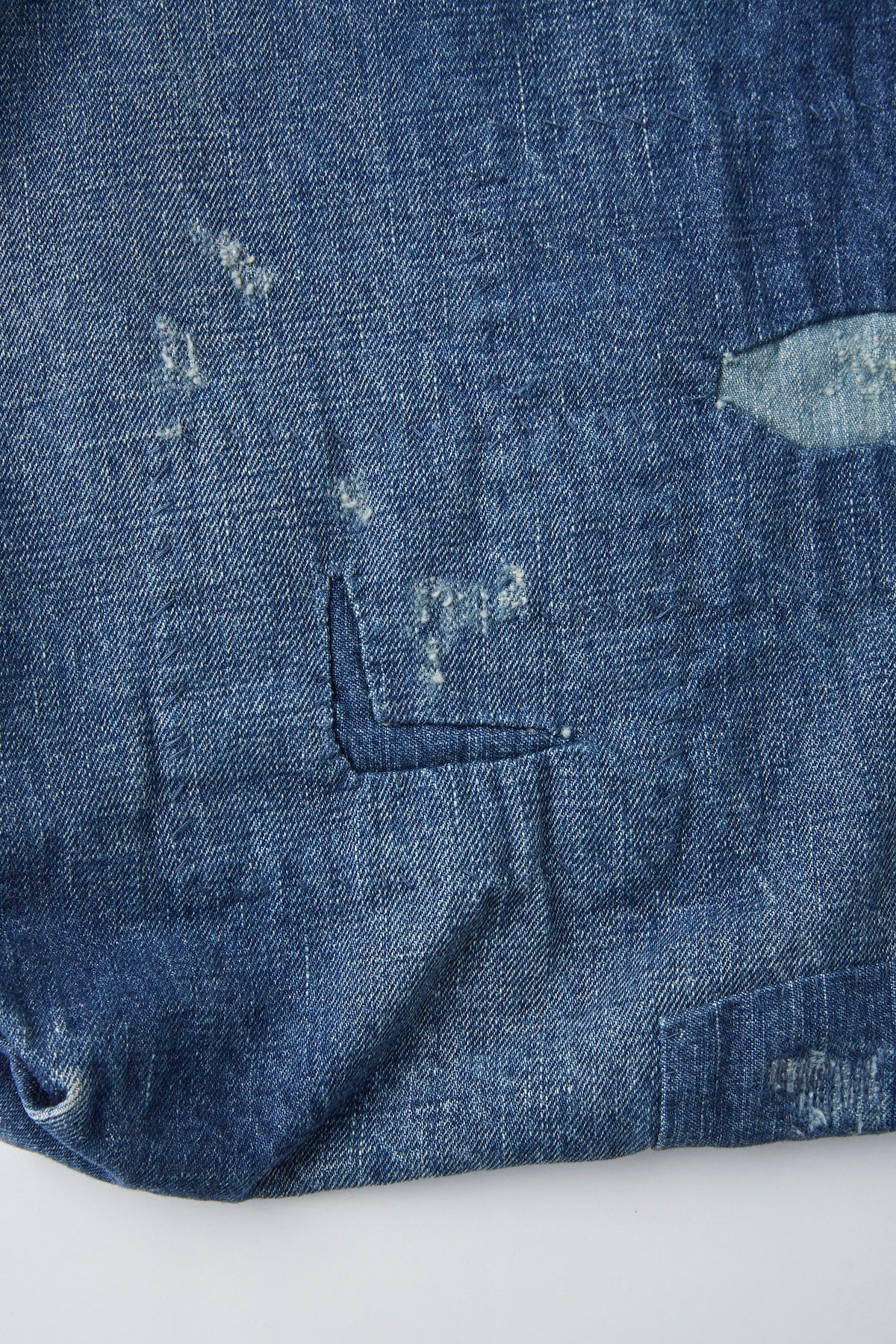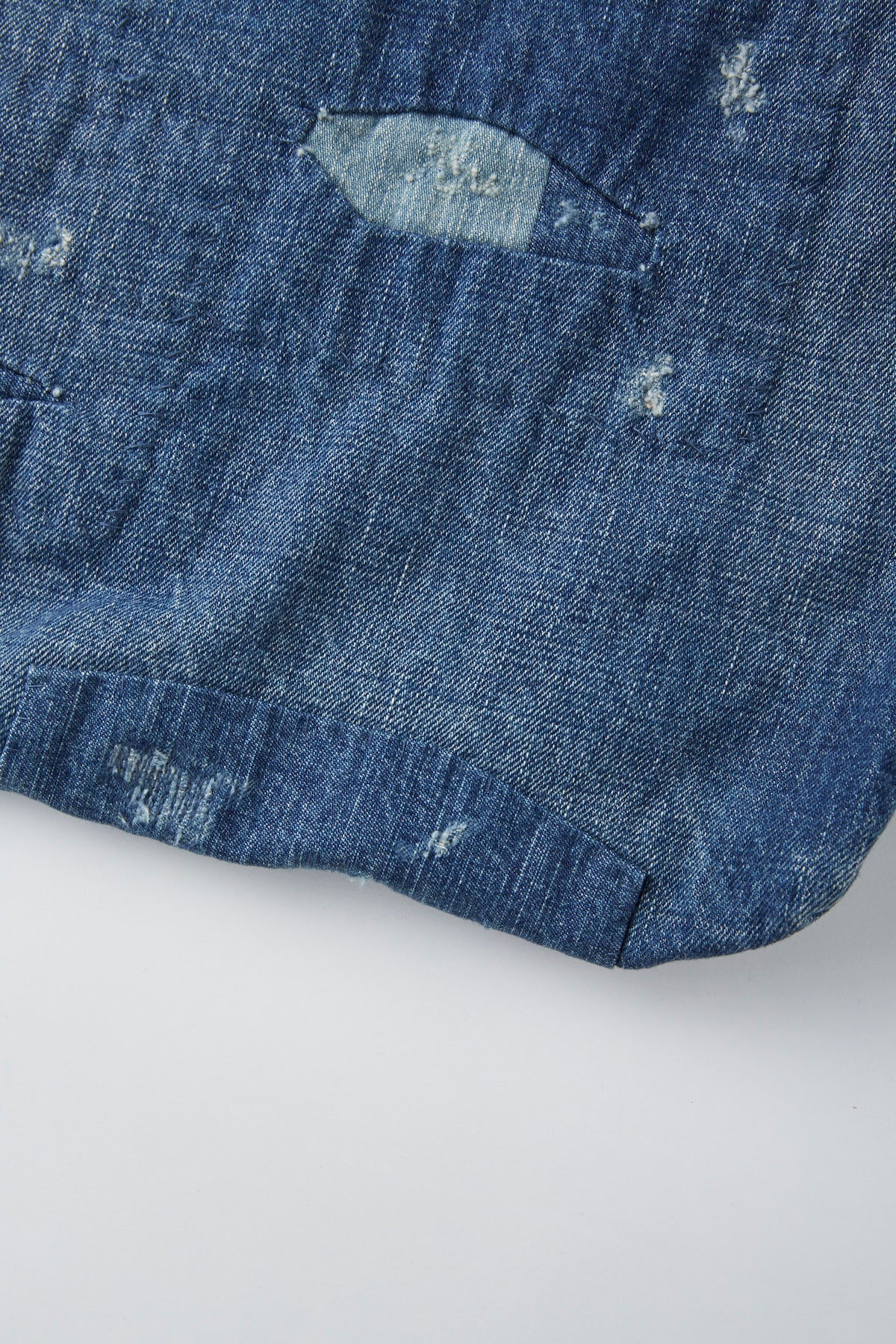 12ozインディゴデニム タテヨコ同番手で、ムラ感が短くて存在感のあるムラ形状になっております。染色はインディゴロープ染色で、くすんだ色味の微ベージュインディゴが特徴です。タテヨコ同番手で8/-を使用し、重さを感じず、3/1の綾立ち感が少しちいさく、ナチュラルな仕上げ。