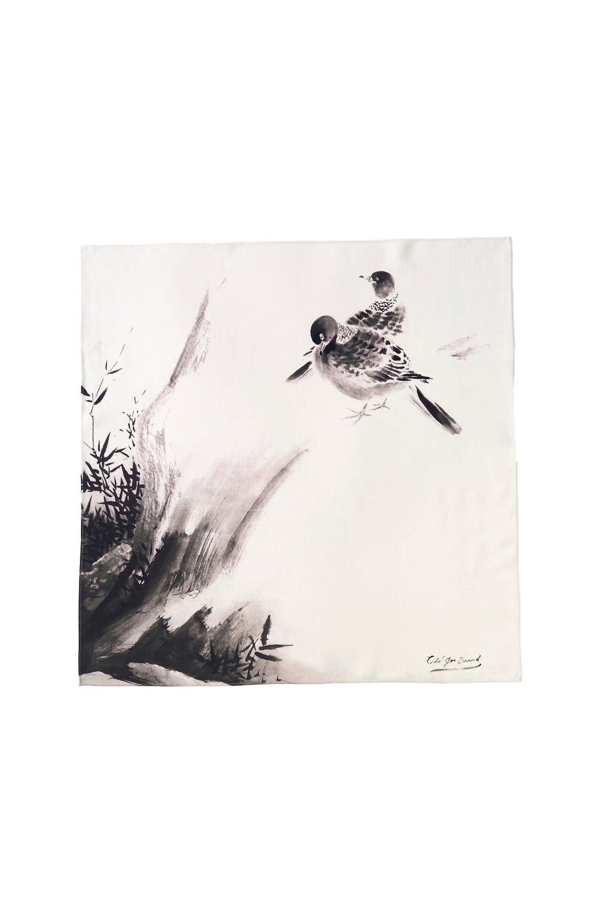 DESCRIPTION定番のプロダクト、オリジナルテキスタイルのバンダナ。チーフがわりにポケットに挿したり、バンダナの様に首に巻いたりと使い勝手の良いピースとなります。草と鳥が佇む景色はまさに日本の原風景と言え、筆のストロークやブラッシングの味わいも楽しんでいただける今季のモチーフは今までにない新たなOLD JOEスタイルを感じれるでしょう。タテ糸に120dフィラメントレーヨン、ヨコ糸に30/1スパンレーヨンを使用した平織素材を採用。表面に細やかなシボ(凹凸)があるのが特徴。レーヨン特有のなめらかな落ち感と美しい発色に加え、シボによる立体感と光沢のニュアンスが加わり、奥行きのある表情を演出します。軽やかでしなやかなドレープ性があり、肌触りがやわらかいので、季節を問わず快適に着用いただけます。
